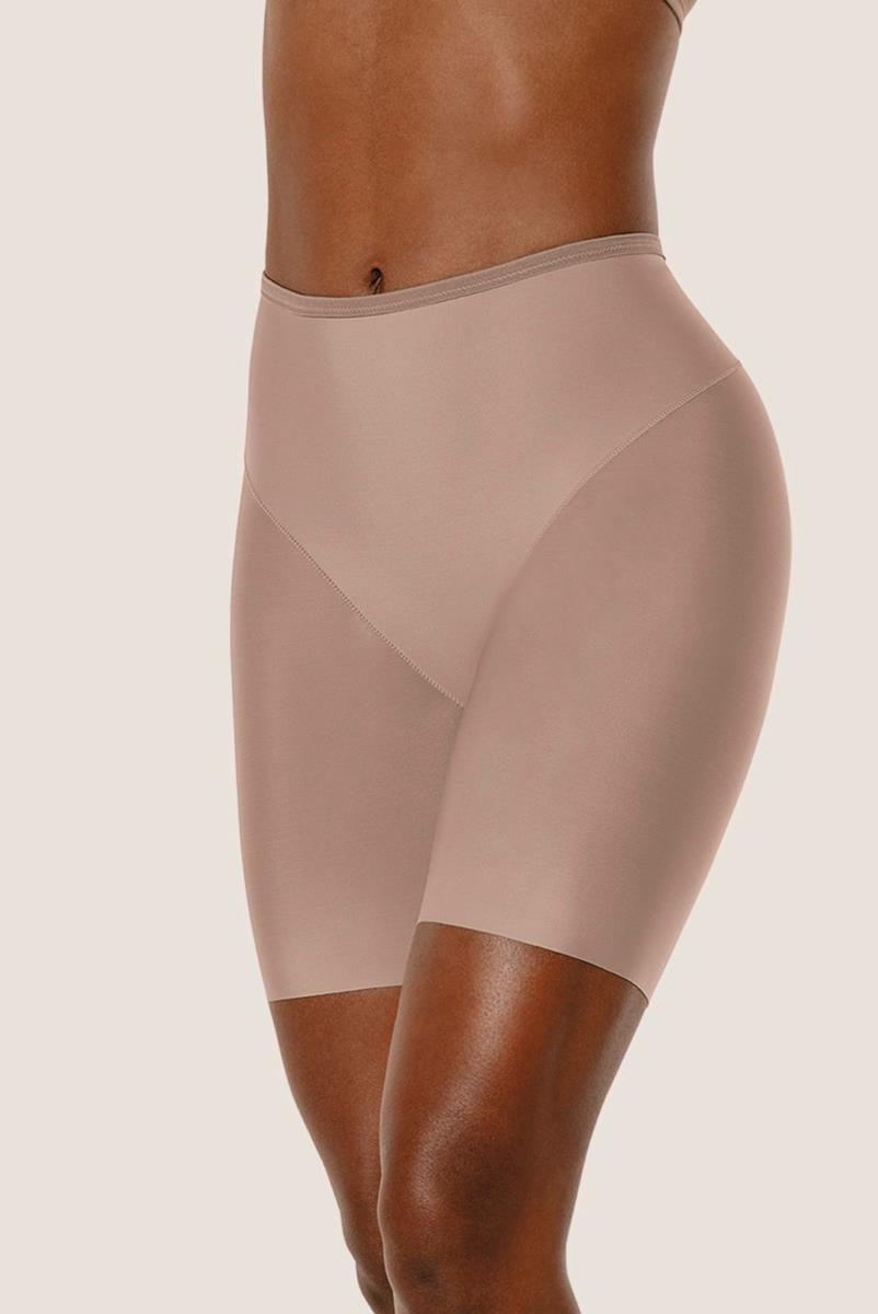 Frente e costas em elastano control com moderada compressão e elástico na cintura. Adere no corpo e suaviza a barriga. Pernas em microfibra elástica ultra, sem elásticos na bainha. Fundo forrado de 100% algodão. Recortes anatômicos, não marca a roupa, corte a fio.